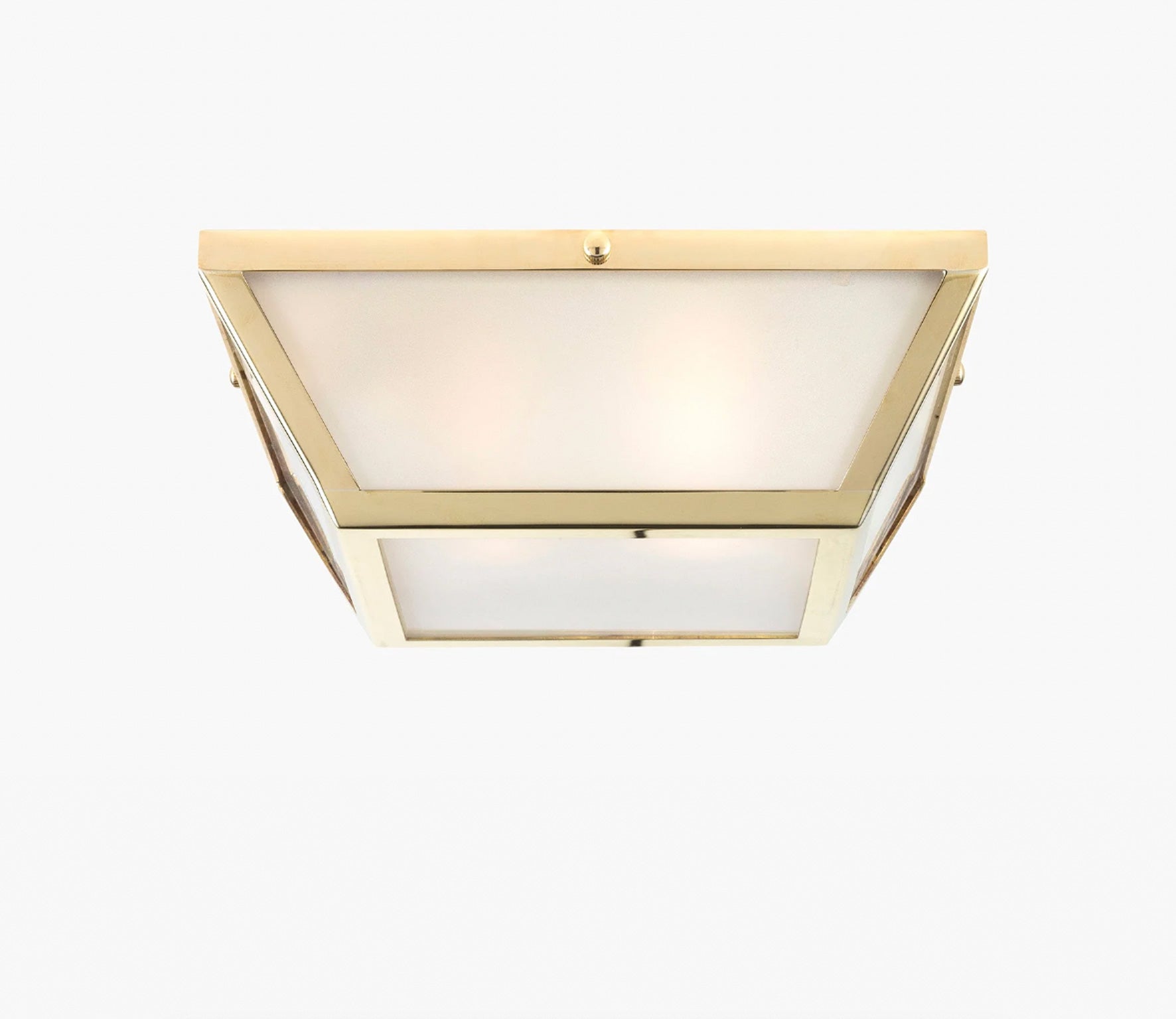 A handsome sconce providing directional light that radiates outward through frosted glass panels. This single arm fixture is amply sized to stand on its own or use as a pair to compliment a double washstand. The Strand light is available in multiple metal finishes. Handcrafted in Europe.