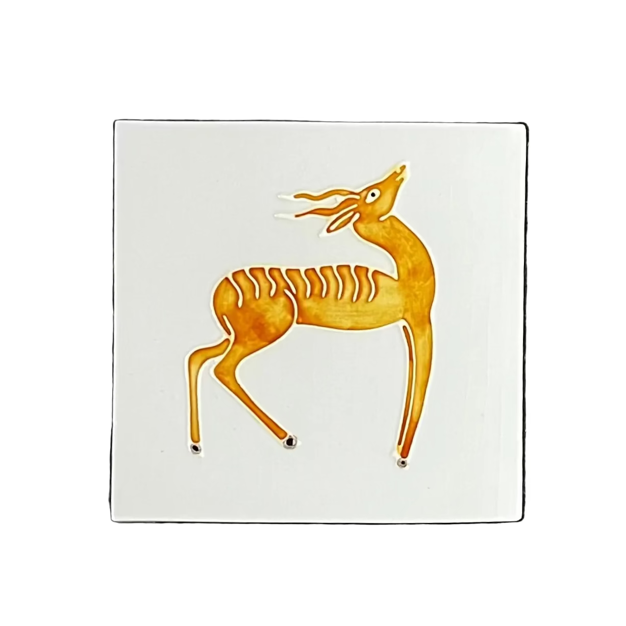 In this joyful collection of handpainted ceramic tiles, French artist Louis Barthélemy captures the energy and vivacity of contemporary Egypt while paying homage to its storied past. Inspired by the ancient frescos and hieroglyphics lining Egyptian temples and tombs, along with the work of contemporary French photographer Denis Dailleux, Barthélemy evokes fantastical scenes of elegant figures, frolicking animals and naturalist motifs. Handcrafted in England, using traditional tube lining techniques. Coordinating trims and tiles are available to order separately with no minimums. Please note, glaze colours will vary between batches.