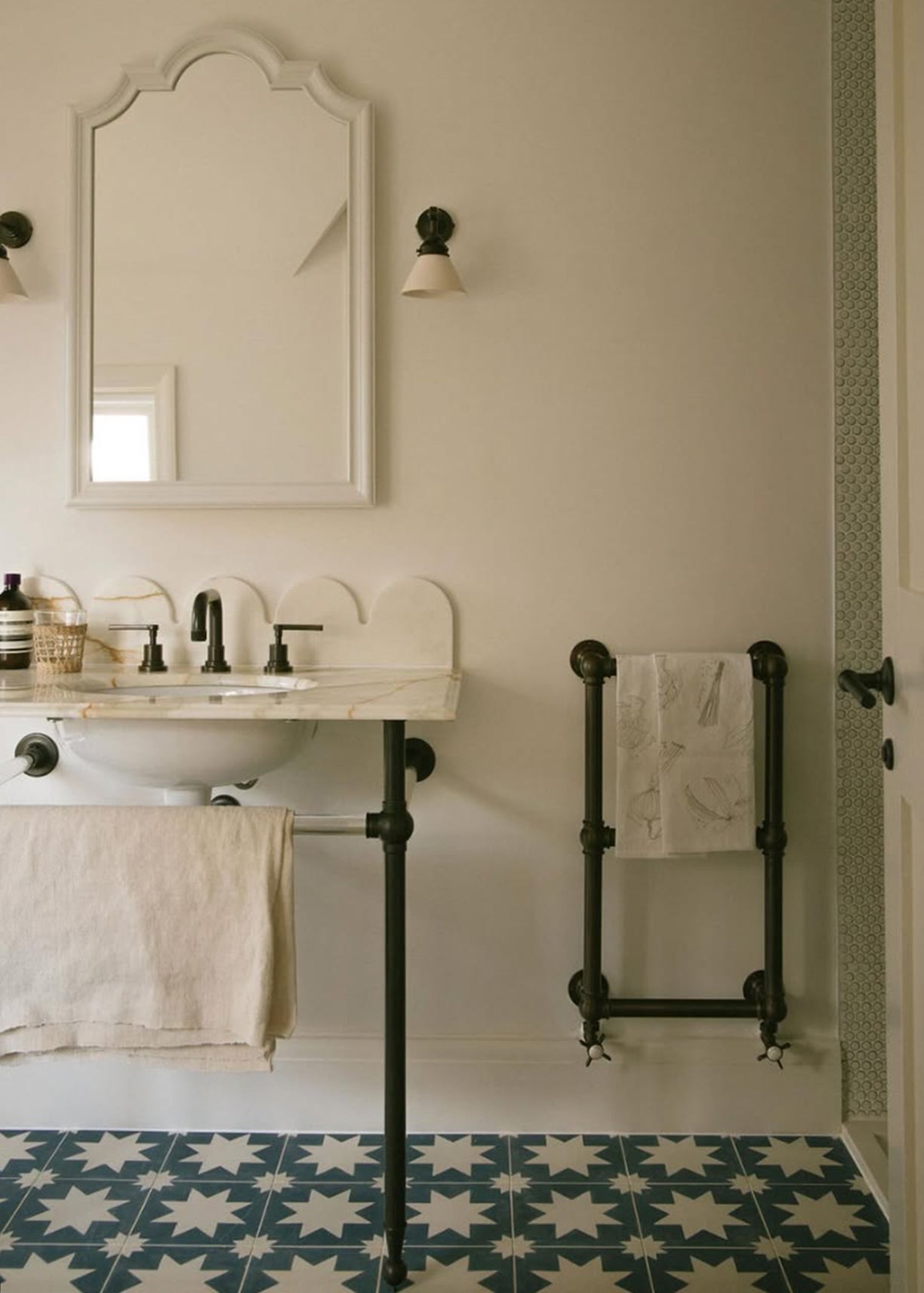 Single Hanbury Washstand in Bronze with Glass Towel Bars. Designer: Rachel Cropper Studio, Photographer: Sarah Button