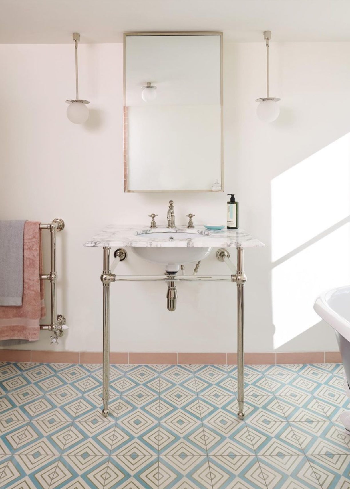Single Hanbury Washstand in Polished Nickel with Glass Towel Bars. Designer: Rachel Cropper Studio, Photographer: Sarah Button