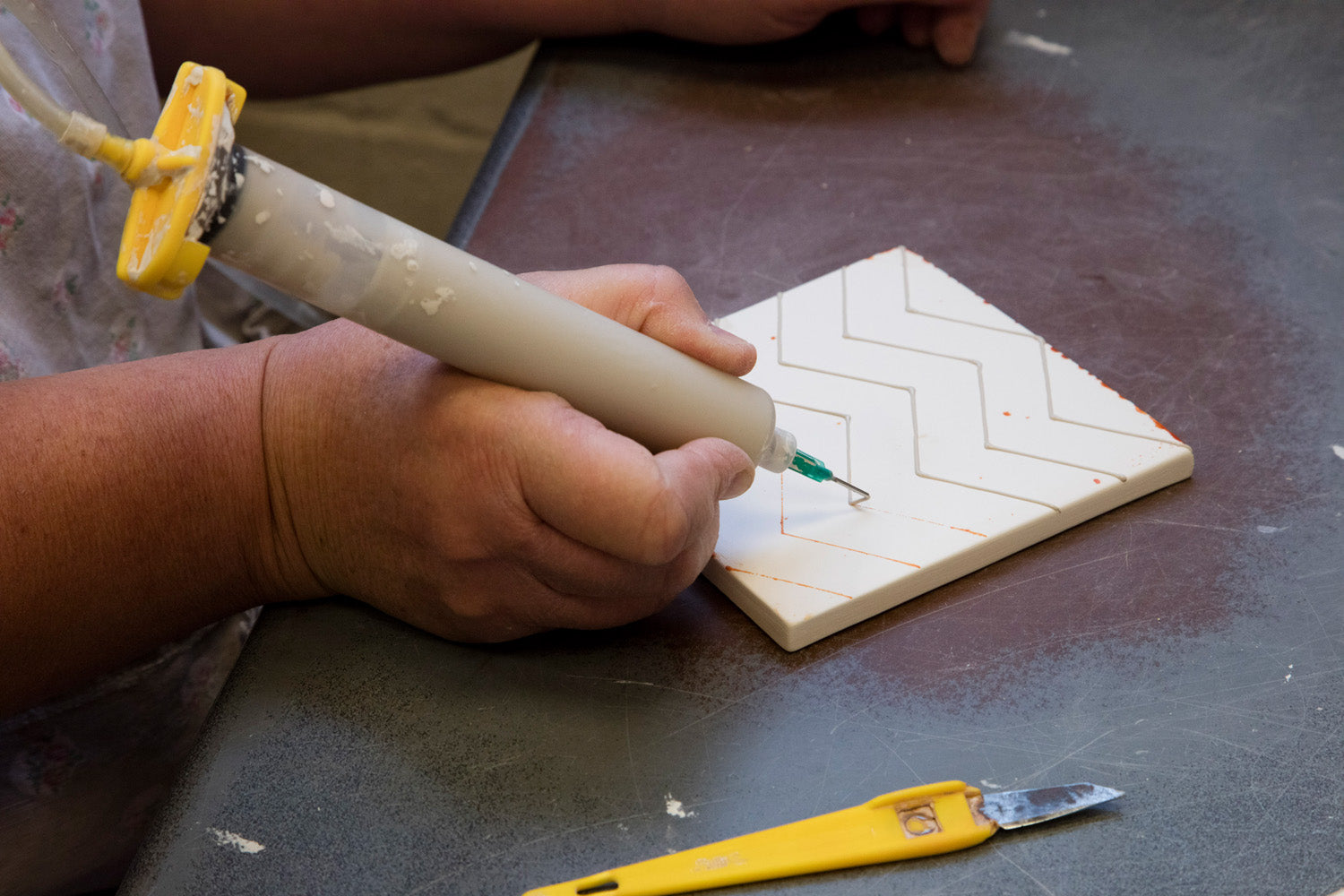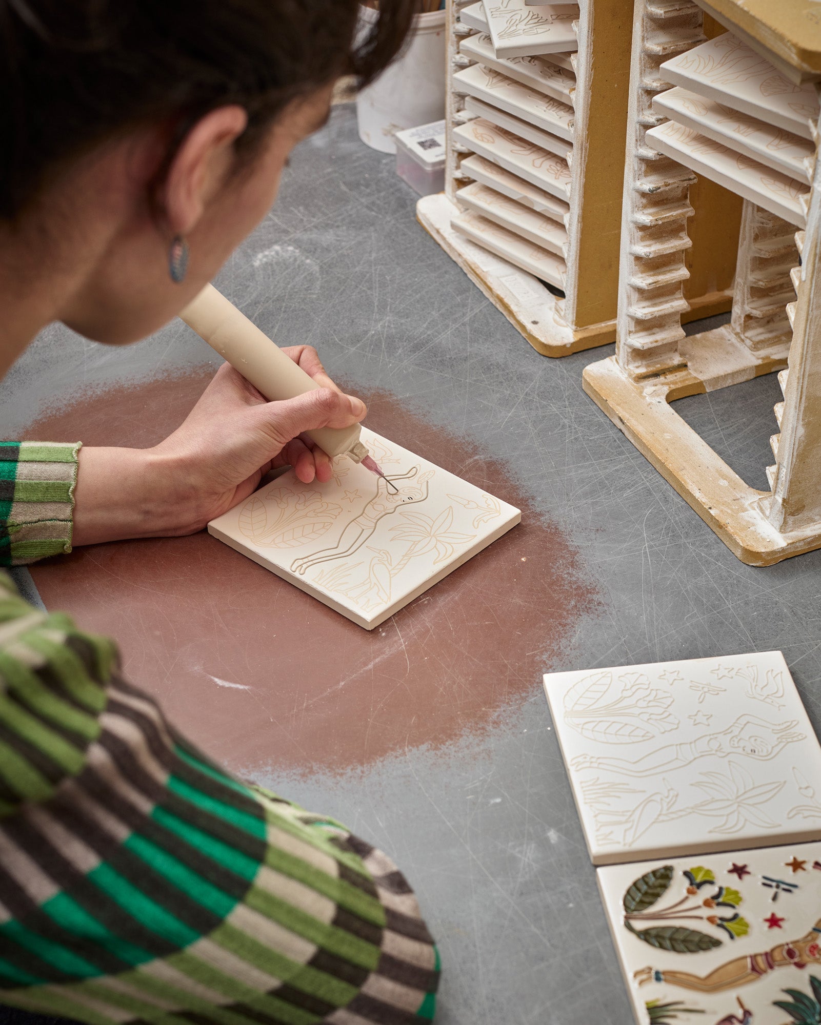 We are proud to handcraft our ceramic tiles in Stoke-on-Trent, the historical heart of pottery in England. We believe we are the last factory in the UK making extruded and hand cut earthenware tiles at scale. We are also believed to be the last factory in the UK who specialise in tube lining. This decorative technique was commonly used on Victorian and Art Nouveau fireplaces. Today, clients embrace its ability to enliven modern interiors with unique patterns and motifs.