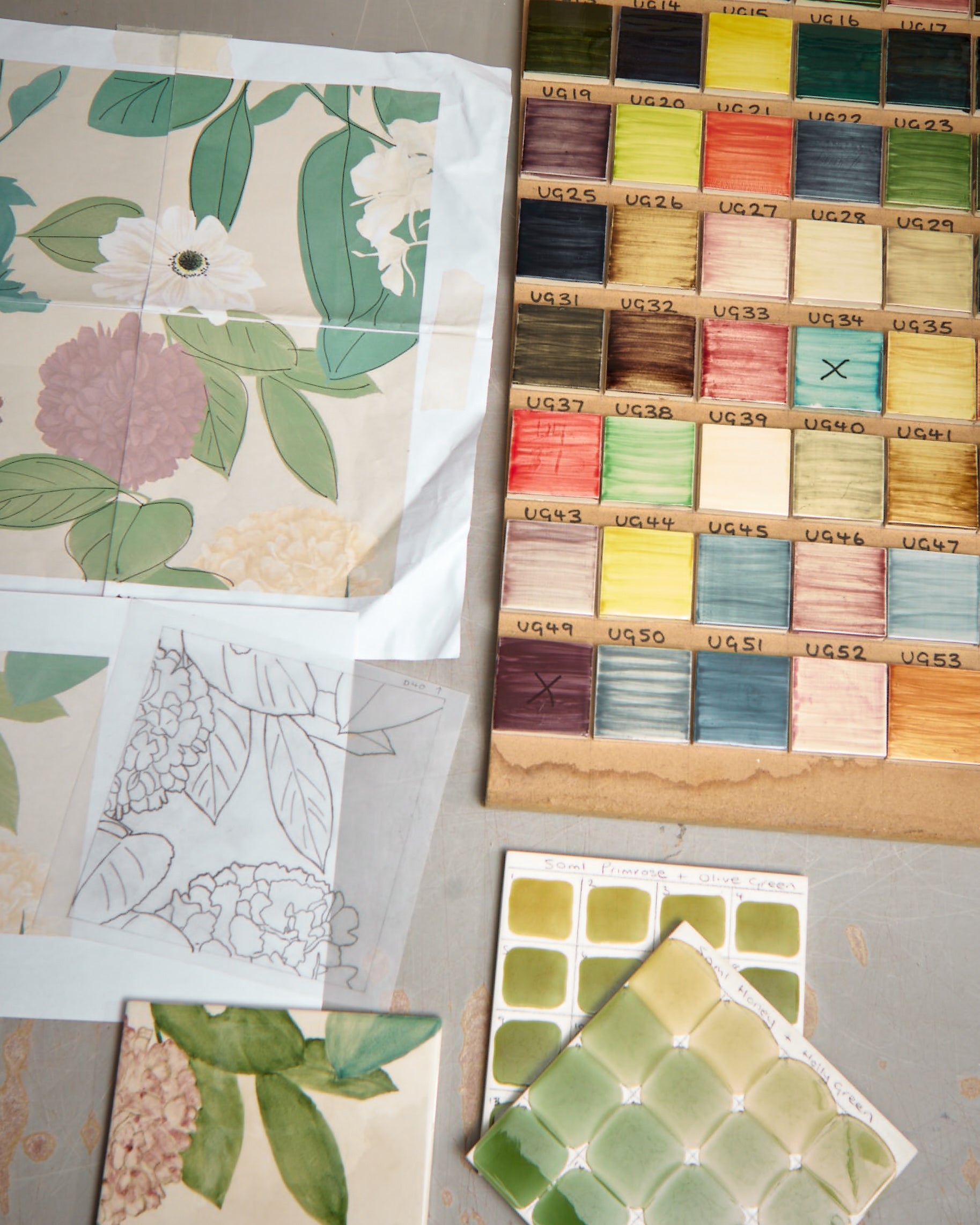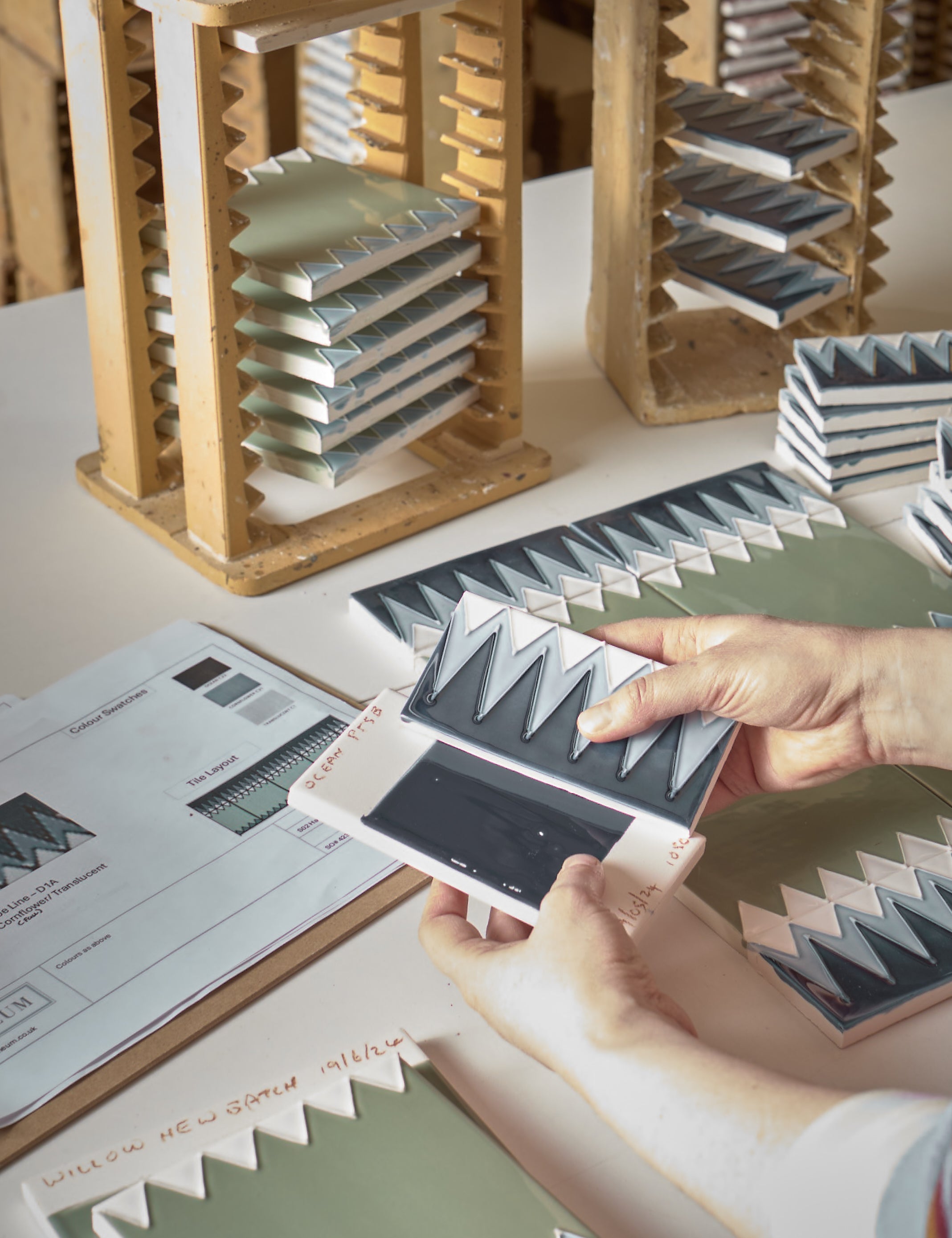 For clients looking for something even more bespoke we can create custom tiles for projects: be that custom glaze colours, custom shapes or recreating your own pattern design or artwork onto tile.