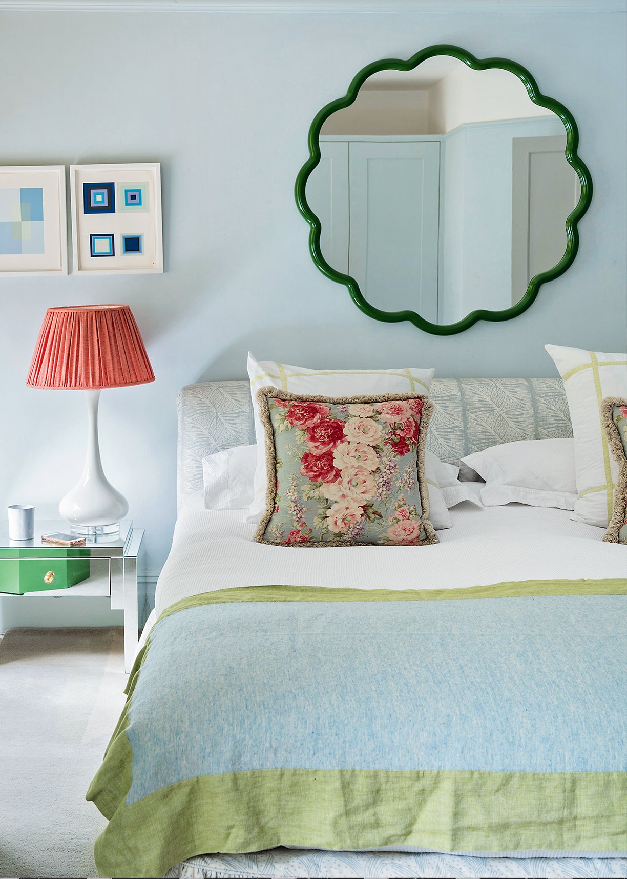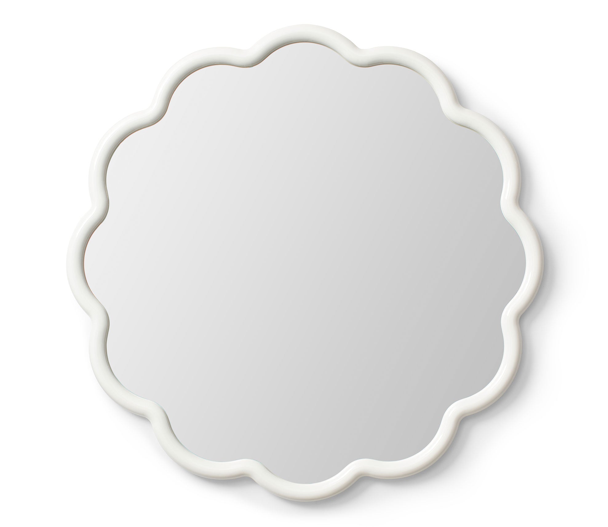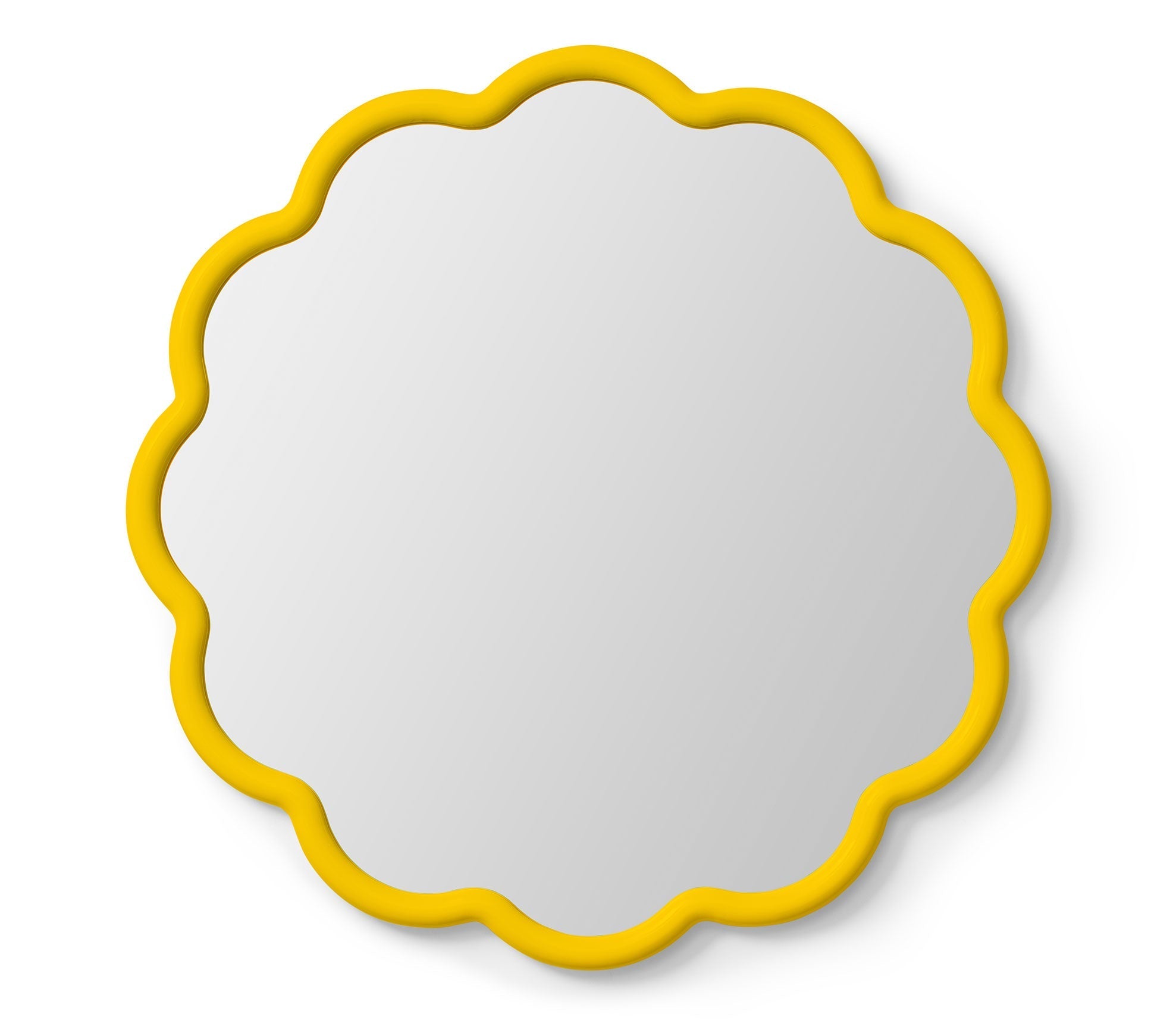 A large scalloped-edge wall mirror boasting 12 petals in a spectrum of high gloss hues. Suitable for any room in the house, neutral shades compliment interiors while brighter colours add vibrancy. Custom colours and a small number of alternative sizes available upon request. Handcrafted in England.