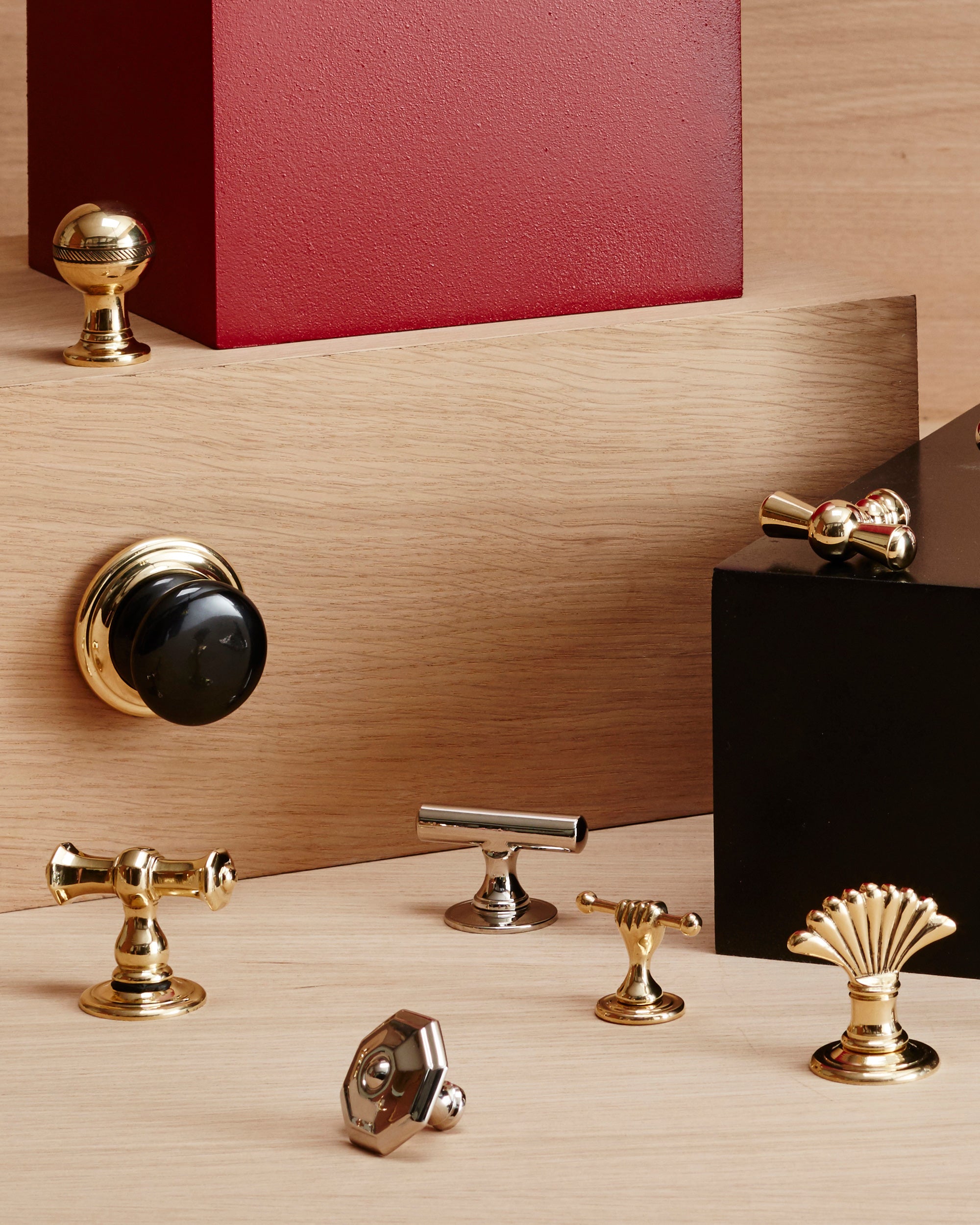Our range of knobs and pulls elevates cabinetry, from built-ins to freestanding furniture, for an instant upgrade. The collection is made of solid brass and is available in multiple metal finishes. Select designs also feature wood or porcelain components for added detail. Handcrafted in Europe.